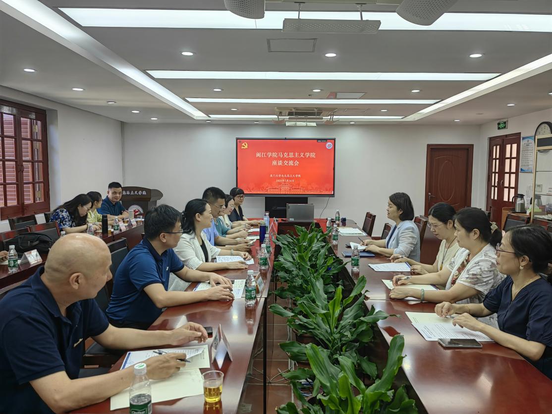2024年7月16日下午,闽江学院马克思主义学院院长陈东、党总支副书记张颖等一行15人到访我院座谈交流。学院党委书记石红梅教授,常务副院长张有奎教授,以及曾炜琴、傅丽芬、黄佳佳、江春萍等老师参加此次座谈。座谈交流会在囊萤楼302会议室举行。