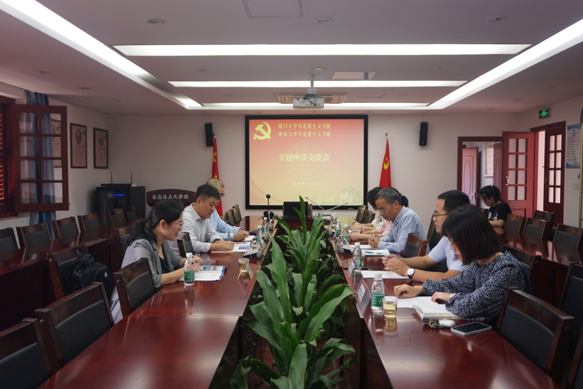 2020年11月2日上午,海南大学马克思主义学院党委副书记张井富一行人来我院进行党建工作的交流。我院党委书记侯利标以及部分师生党支部委员参加了此次座谈会。