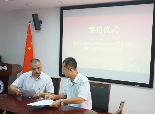 9月14日,学院与福建省工业职工思想政治工作研究会党建共建协议签字仪式在囊萤楼302会议室举行。福建中烟工业有限责任公司林定丰处长、伍达明副经理等一行6人、马克思主义学院党委原宗丽副书记、张艳涛副院长、李猛老师等参加了共建签字仪式。签字仪式由张艳涛副院长主持。
