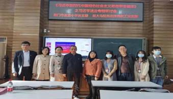 在专题研讨环节,思想政治教育教工党支部章舜钦老师作题为《习近平法治思想的核心要义与时代价值》的讲座。章老师在讲座中系统梳理了习近平法治思想形成的渊源;结合“十一个坚持”重点讲解了习近平法治思想的核心要义;从政治意义、理论意义、实践意义、世界意义四个层面,点明了习近平法治思想的时代价值。同时,章老师强调指出,学校要及时协同家庭、社会,在学生成长的各个阶段开展法治教育,以此强化学生的法治观念。思想政治教育教工党支部王奇琦老师作为教师代表对于此次活动及专题研讨会的召开表示感谢,认为这次活动为一部分今后想要走上教师岗位的学生提供了真正走进课堂的机会。同时,她也欢迎更多同仁能够与厦大马院在大中小学思政课一体化的建设方面进行更加深入的交流和探讨。