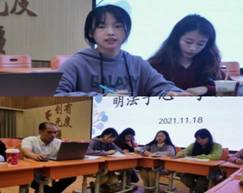 “纸上得来终觉浅,绝知此事要躬行”。为将前期学习到的理论知识更好运用于教学实践,真正做到知行合一,11月22日-26日,实习生基于《习近平新时代中国特色社会主义思想学生读本(小学)》,开展了为期一周的教学实践。在教学过程中,实习生两人为一组,以《宪法是国家的根本法》《用好法律维护权利》《我们是未成年人专门法律来保护》为主题,分别进行备课、说课、上课、磨课。每一课结束后,大家会以圆桌会议的方式及时回顾并总结课堂之中的精彩瞬间和缺点不足。