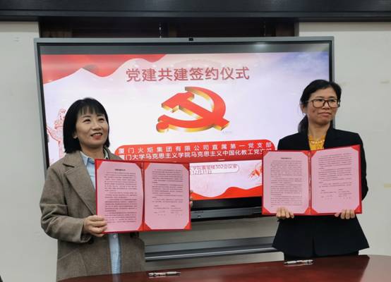 为深入学习贯彻落实党的十九届六中全会精神,开辟党建创新模式新征程,12月31日下午,厦门大学马克思主义学院马克思主义中国化教工支部与厦门火炬集团有限公司直属第一支部在厦门大学囊萤楼302会议室举行党支部共建仪式,努力搭建起“党建统领、优势互补、资源共享、协调发展、凝心聚力、共赢未来”党建工作平台,谱写2022年支部党建共商共建共赢新篇章。