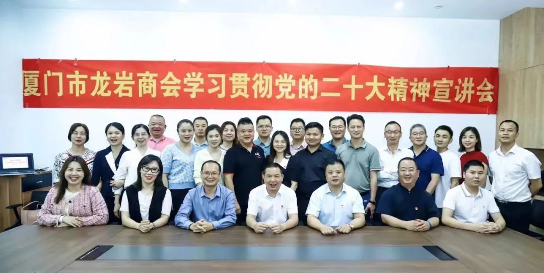 2022年11月11日下午,应厦门市龙岩商会邀请,马克思主义中国化教工党支部党员罗礼太副教授为其宣讲党的二十大精神。参与本次宣讲会学习的有厦门市龙岩商会党支部书记兼常务副会长邓飞周、常务副会长兼秘书长赖英群、副会长李秉璋、商会党员、会员等30余人。