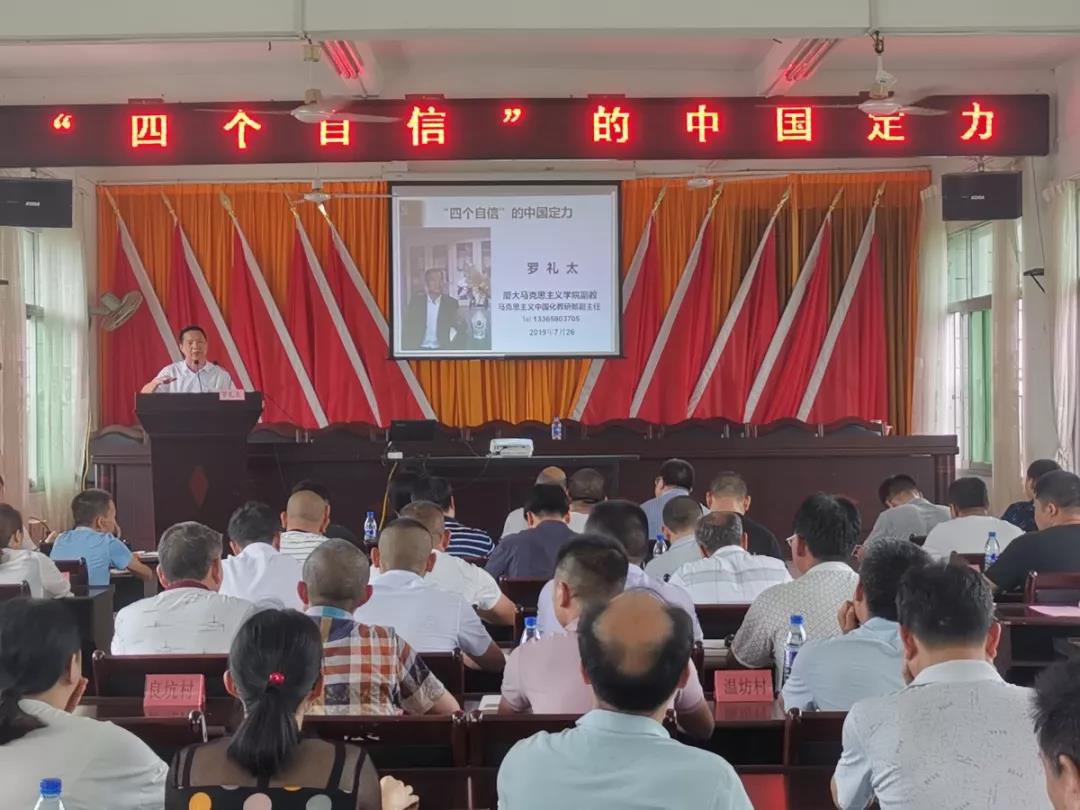 2019年7月20至27日,马克思主义学院调研实践队一行九人在罗礼太老师带领下前往福建连城开展“美丽乡村”为期七天的考察。7月25日上午、26日下午,罗老师义务为连城县罗坊乡、新泉镇和新泉整训纪念馆上专题党课。专题党课的主题是:“四个自信”的中国定力。乡镇全体党政领导、乡机关全体干部、乡直单位负责人、各村两委主干参与了学习。