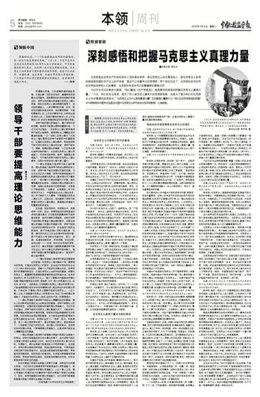恩格斯说过:“一个民族要想站在科学的最高峰,就一刻也不能没有理论思维。”5月4日,习近平总书记在纪念马克思诞辰200周年大会上讲话指出,中华民族要实现伟大复兴,也同样一刻不能没有理论思维。马克思主义始终是我们党和国家的指导思想,是我们认识世界、把握规律、追求真理、改造世界的强大思想武器。广大党政干部必须注重提高理论思维能力,更好推动民族复兴伟业。——编者