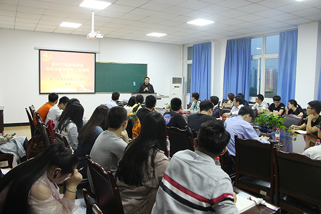 2018年4月18日下午和4月19日晚上,分别应西南大学马克思主义学院与西南石油大学马克思主义学院、科研处和四川省能源安全与文化社科普及基地的邀请,厦门大学校党委宣传部副部长、我院肖斌副教授作了以《新时代坚持和加强党的全面领导的三重逻辑》为题的理论宣讲。西南大学马克思主义学院院长助理王丰副教授、西南石油大学马克思主义学院院长张小飞教授、校科研处副处长陈怡男教授、校党委组织部副部长张凤等出席报告会,两校马克思主义学院部分教师、全体研究生和其他学院师生近百人聆听了报告会。