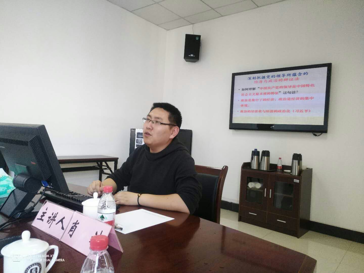 2018年4月22日下午,应四川大学马克思主义学院的邀请,我院肖斌副教授作为嘉宾参加了以“马克思主义创新发展”为主题的学术沙龙,并围绕习近平新时代中国特色社会主义经济思想作了主旨发言,四川大学马克思主义学院党委副书记刘渊出席并主持了学术沙龙,学院部分教师和研究生参与了此次学术活动。