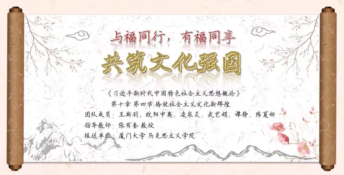 我院晏振宇副教授指导的《驼铃声中的文化自信》和张有奎教授指导的《与福同行,有福同享,共筑文化强国——以八闽福文化繁荣发展的实践为例》分别获得一等奖和二等奖。