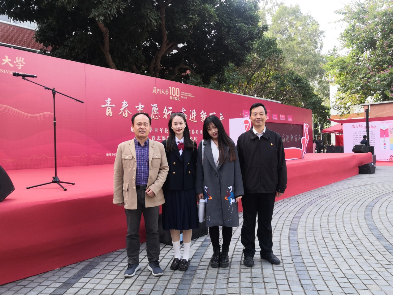 2020年12月5日,厦门大学百年校庆志愿者招募启动仪式暨志愿服务工作成果展在三家村广场隆重举行。我院师生代表参加了启动仪式。