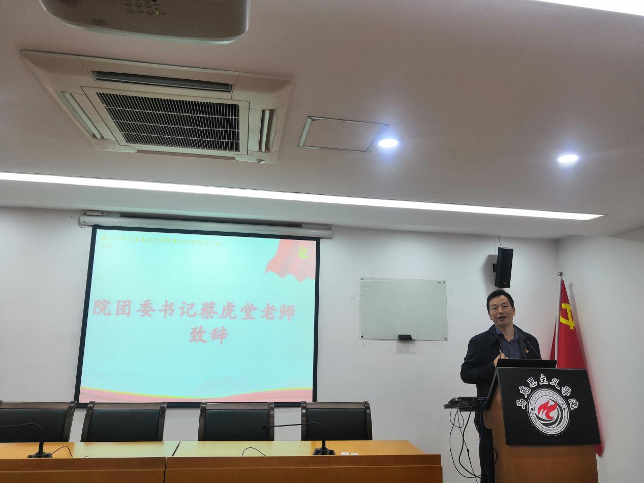 蔡虎堂老师代表学院团委向新一届研究生会表示祝贺,希望研究生会发扬学院优良传统,再接再厉,再创辉煌。他表示学院今后将尽可能为同学们提供展示的平台,并鼓励大家积极参与集体活动,培养为同学服务的精神,全方位提升个人素质,为迎接学校百年校庆和学院“双一流”建设贡献青春力量。
