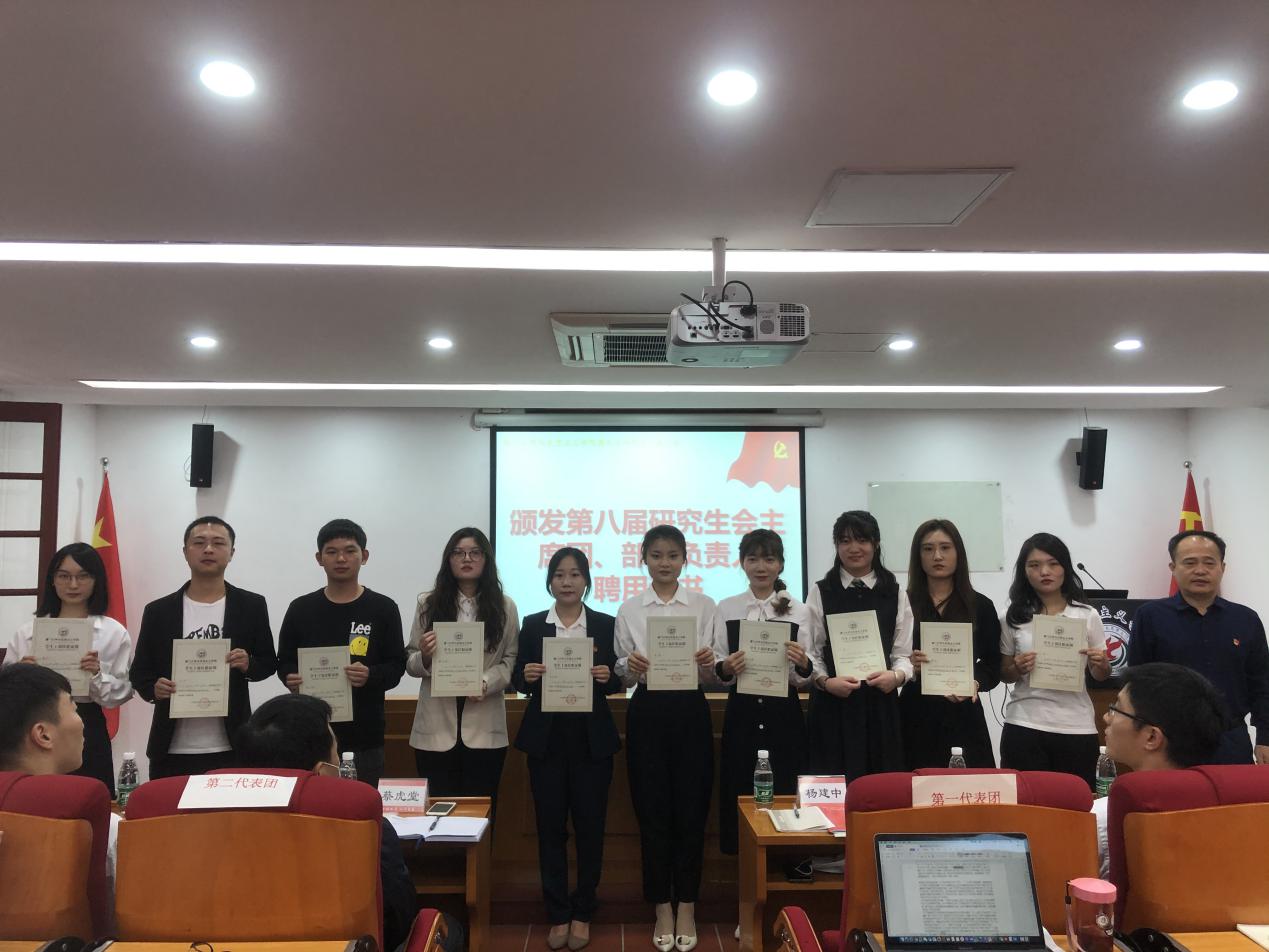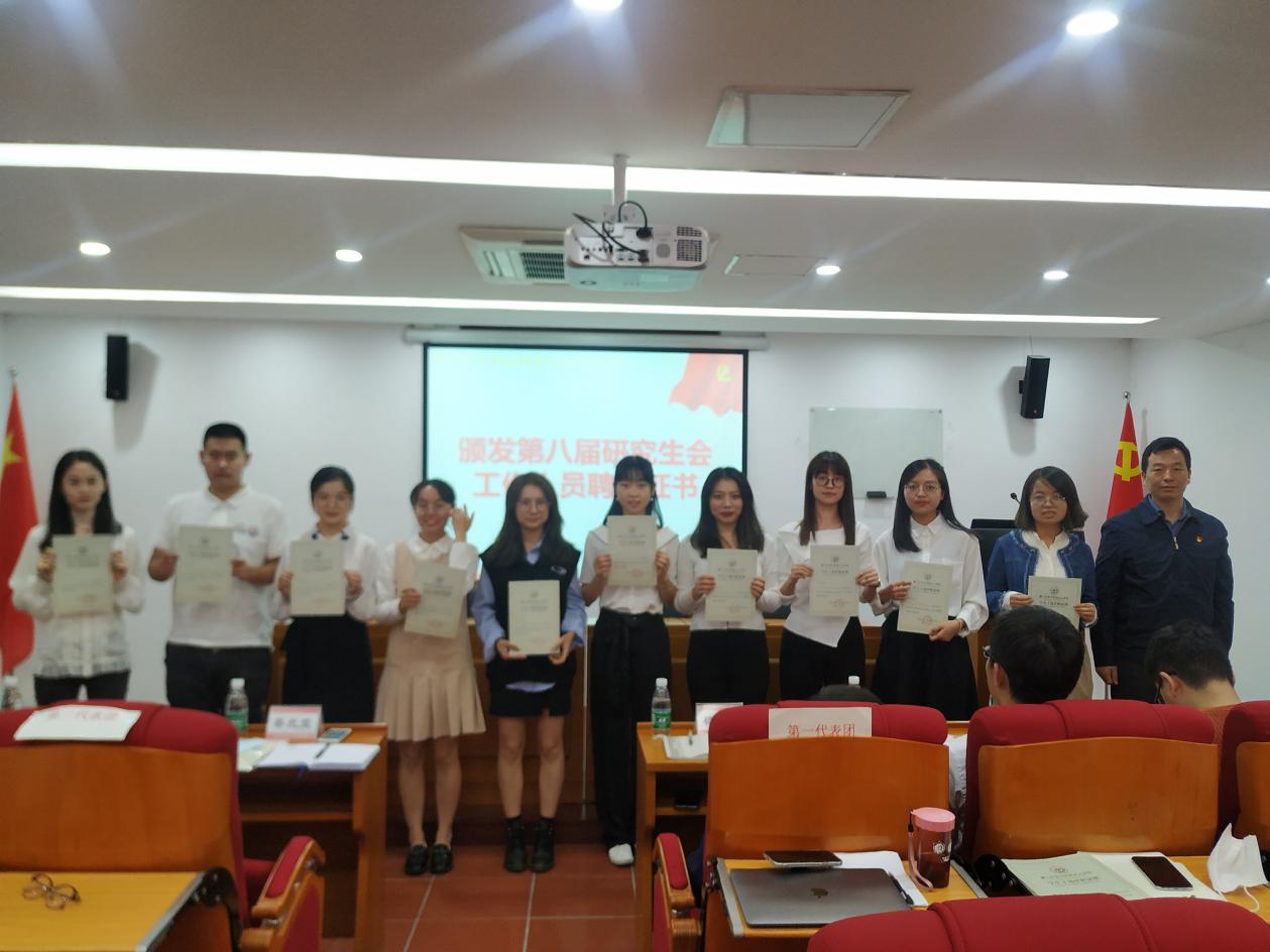 随后,杨建中和蔡虎堂老师为第八届研究生会学生干部颁发了任职荣誉证书。