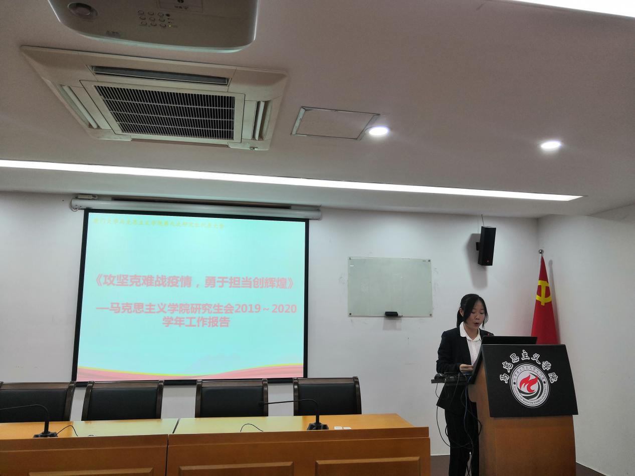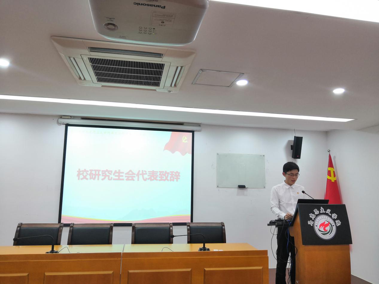 校研究生主席团成员袁畅代表厦门大学第三十届研究生会对本次大会的召开表示了热烈的祝贺。他指出,在马克思主义学院党委的正确领导和院团委的具体指导下,马克思主义学院研究生会成果突出,并希望新一届研究生会再接再厉,在继承与创新中永葆生机。