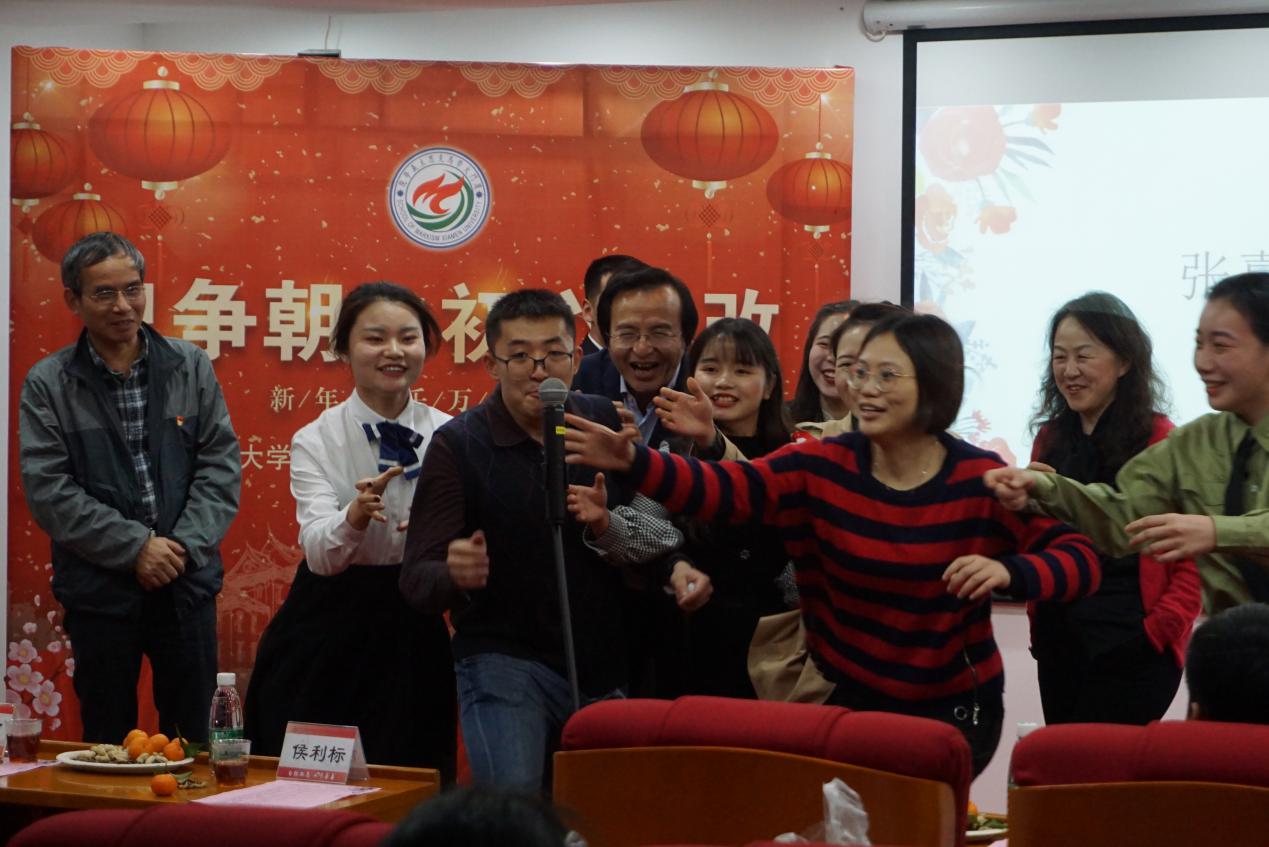 新春晚会除了丰富多彩的表演外,还有激动人心的游戏环节。特别是进行了数轮的“正话反说”游戏,紧张又激烈,引得台下哄堂大笑,师生们更是通过游戏互动加深了感情。