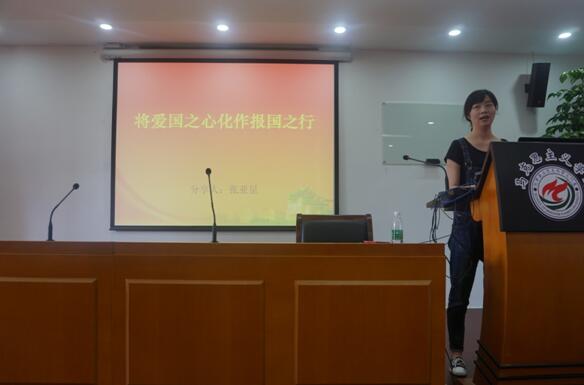 第一部分中,同学们通过阅读习近平总书记给大学生的回信,感受到作为一名青年学子的爱国担当,要立足本职主动作为,将一片赤子之心付诸爱国心与强军梦的实践学习当中。活动中,2016级硕士研究生张亚星同学结合自己四年军旅生活,发表了“将爱国之心化作报国之心”的演讲。演讲中,张亚星同学表达了树立集体荣誉感,摆正自我心态的重要性,鼓励同学们要有爱国、报国之心。