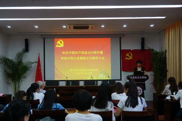 为庆祝中国共产党建党96周年暨罗扬才烈士英勇就义90周年,6月29日下午,学院团委召开庆祝中国共产党成立96周年暨罗扬才烈士英勇就义90周年大会。受学院党委委托,党委青年委员曾炜琴老师、关工委常务副主任欧阳佑民老师以及全院学生和厦门大学革命史馆讲解员出席了庆祝大会。会议由院团委书记蔡虎堂老师主持。