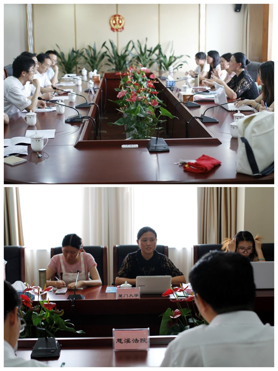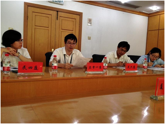 2014年7月17日下午,调研组一行人来到慈溪人民法院进行调研,受到了立案庭庭长胡辉及相关工作人员的热情接待。在慈溪法院的座谈中,各庭法官首先向师生们详细介绍了其所在庭室诉调对接的现状,并列举了一系列相关的典型案例。而后,师生及法官对于“考核压力对于诉对调解的影响”、“被调解人员不给予配合的情况”及“虚假诉讼”等当下所存在的尖锐问题进行了热烈的探讨。最后,人民调解员代表向同学们进一步阐释了“非诉讼调解”作为一种高效及便捷的矛盾化解手段,在医疗、金融、借贷等纠纷时所起的作用。在聆听的过程中,同学们不时提出各自的疑问,均得到审判员及人民调解员耐心且详细的解答。