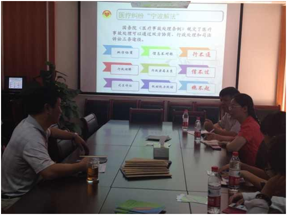 为更加清晰地了解宁波市矛盾化解的现状,调研组还先后走访了宁波市消费者权益保护委员会和波宁市医疗调解委员会,就现阶段社会的特定矛盾纠纷现状进行深入了解。通过现场察看、座谈、查阅资料等,对市、区、县各级“社会矛盾化解机制”的情况进行了专题调研。其中,消保委和医调会分别向师生们介绍了保护消费者权益方面和解决医疗纠纷方面的做法和取得的成效、存在的困难和问题。