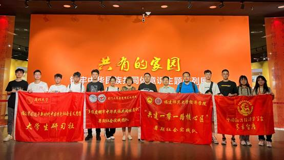 乘风好去,长空万里,直下看山河。三山两盆的广阔疆域承载着厚重悠久的中华文明,也滋养着同心同德的中华民族。十七天的行程中,厦门大学实践队员们克服天气炎热、南北方文化风俗差异等困难,坚持用脚步丈量祖国大地,走进奋战在铸牢民族共同体一线的不同领域,体悟国有企业夯实地区经济基础、高等学校引领青年思想航向、文化展馆凝聚各族文化认同、人民军队护卫社会和谐安宁的深刻内涵。此次暑期实践活动让队员们受益匪浅,大家真切感受到“青山一道同云雨”的其中韵味,明白了即使社会岗位不同,肩负的社会职责不同,我们也定当要怀有相同的理想信念,共同为实现中华民族伟大复兴的中国梦凝聚磅礴力量。