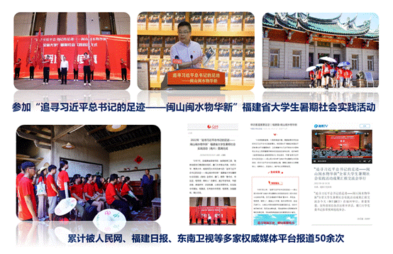 深入基层,巩固深化实践能力的成效。读书会紧抓重要时间节点,开展如“绽放战疫青春·坚定制度自信”五四主题宣传教育等特色主题宣讲活动,推动学生将所学知识内化于心、外化于行。读书会成员通过参与思想政治理论课暑期实践调研项目,赴长汀、古田、泉州、新疆等地开展红色研学活动,借助“行走的红色课堂”铸牢理想信念,用脚步丈量祖国大地,用眼睛发现中国精神,用耳朵倾听人民呼声,用内心感应时代脉搏,在广阔的天地中“自找苦吃”,不断实现理论与实践的有机统一。参加“追寻习近平总书记的足迹——闽山闽水物华新”福建省大学生暑期社会实践活动,在实践中追寻领袖足迹,感悟思想伟力,体验伟大成就,涵养家国情怀。成员带领实践队伍曾获全国大中专学生志愿者暑期“三下乡”社会实践活动优秀团队、福建省暑期社会实践先进个人等荣誉称号。