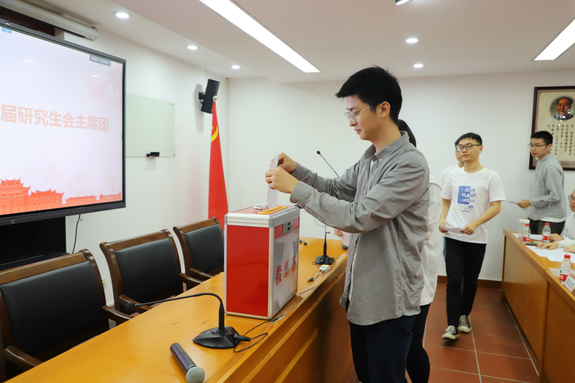 与会代表审议并通过了学院主席团候选人建议名单、大会选举办法以及总监票人、监票人和总计票人、计票人名单,主席团候选人依次发表竞选演讲。经全体参会代表无记名投票,顺利选举产生刘张健、张文欣、苏悦为学院第十一届研究生会主席团成员。