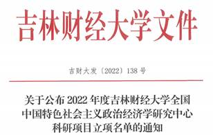 2022年度吉林财经大学全国中国特色社会主义政治经济学研究中心科研项目立项名单