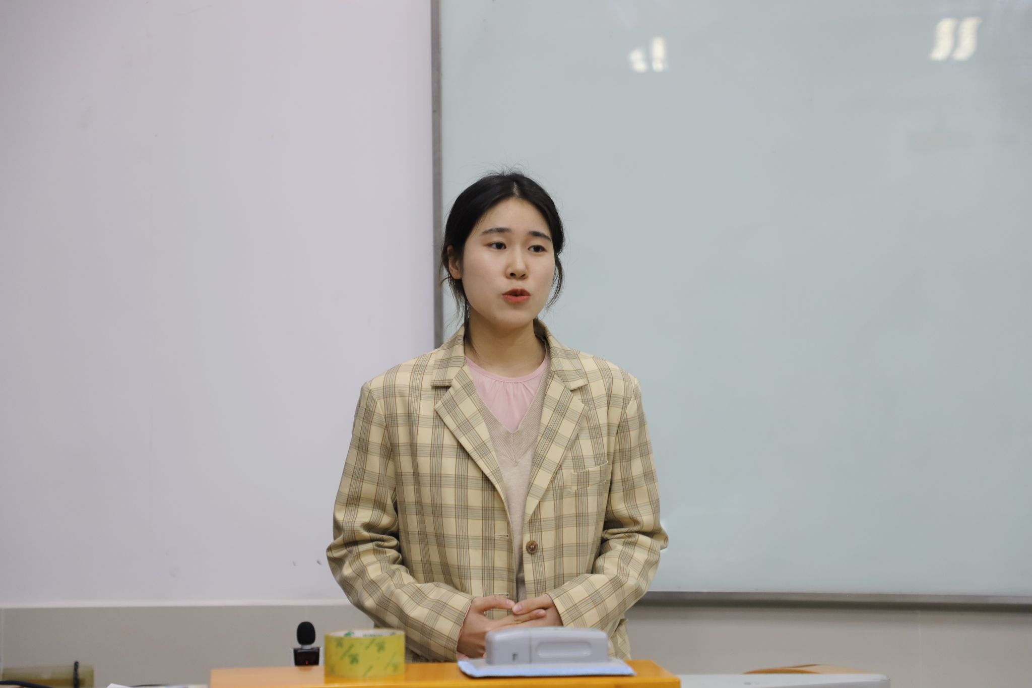 2022级团支部成员宋洛蕻向大家讲述了陈康容烈士的故事。“青春价无比,团聚何须提,为了伸正义,何惧剩重皮。”这是陈康荣死前留给敌人的独白。英雄虽死,但忠魂永驻,宋洛蕻呼吁青年团员在全面建设社会主义现代化国家新征程上,应怀感恩之心,致敬革命先烈,传承英雄精神,勇敢担负起时代重任,做出不负韶华、不负时代、不负人民的无悔选择。