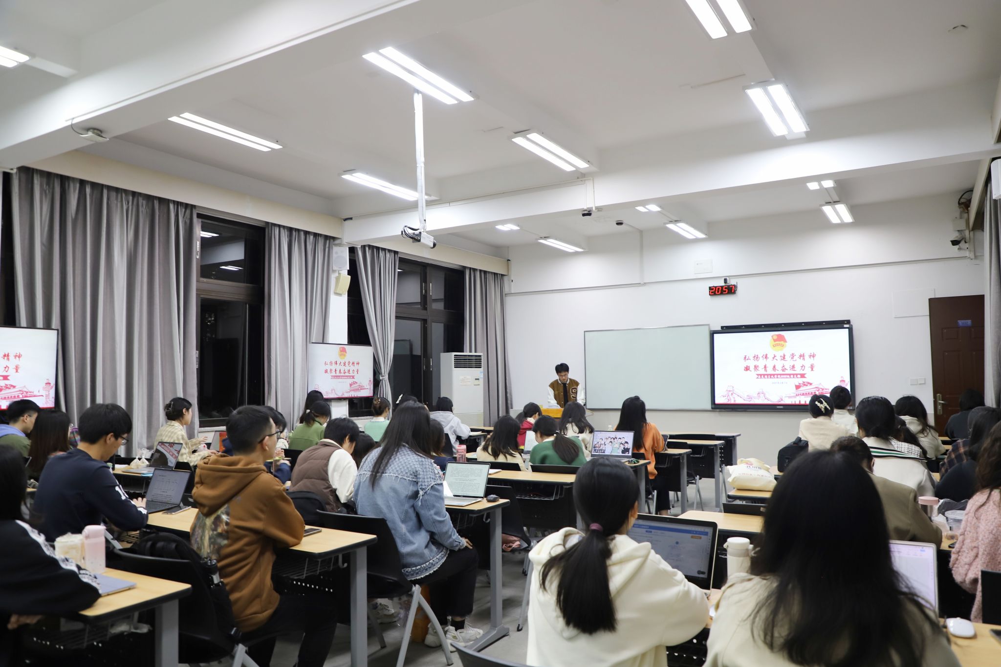 以伟大建党精神为源头的精神谱系是中国共产党人独特的精神标识。为深入学习宣传贯彻党的二十大精神,弘扬伟大建党精神,团结带领广大团员青年坚定信念跟党走,4月7日,马克思主义学院2022级团支部在庄汉水楼102开展主题为“弘扬伟大建党精神,凝聚青春奋进力量”的团课。本次活动由2022级团支部书记曹立军主持,2022级团支部全体团员参与。