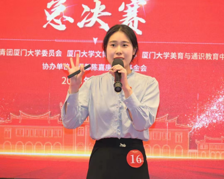 近日,校团委、厦门大学文博管理中心、厦门大学美育与通识教育中心公布2022年厦门大学“闽都﹒嘉庚杯”讲解员风采大赛获奖名单。我院硕士生宋洛蕻获二等奖,辛怡获三等奖,邢雨娟、陈君怡、陈其源、欧阳申奥、郑婧妍、高玉平、蓝心雨获优秀奖,学院获优秀组织奖。