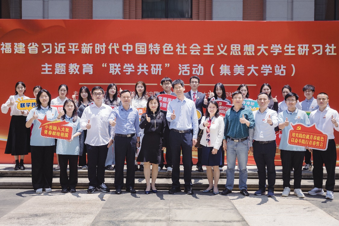 5月9日,福建省习近平新时代中国特色社会主义思想大学生研习社“联学共研”活动在集美大学举行。活动以“凝心铸魂学思想,强国复兴显担当”为主题,通过经典诵读、学习心得交流等形式推动青年学子不断增强对习近平新时代中国特色社会主义思想的政治认同、理论认同、情感认同。活动上,省内7家大学生研习社学生代表与省习近平新时代中国特色社会主义思想研究中心青年博士深入学习《习近平著作选读》第一卷、第二卷的重要篇章,各自畅谈学习心得体会。我校大学生研习社成员马克思主义学院2022级硕士研究生吴思怡与公共事务学院2022级本科生王畅作为研习社学生代表发言。