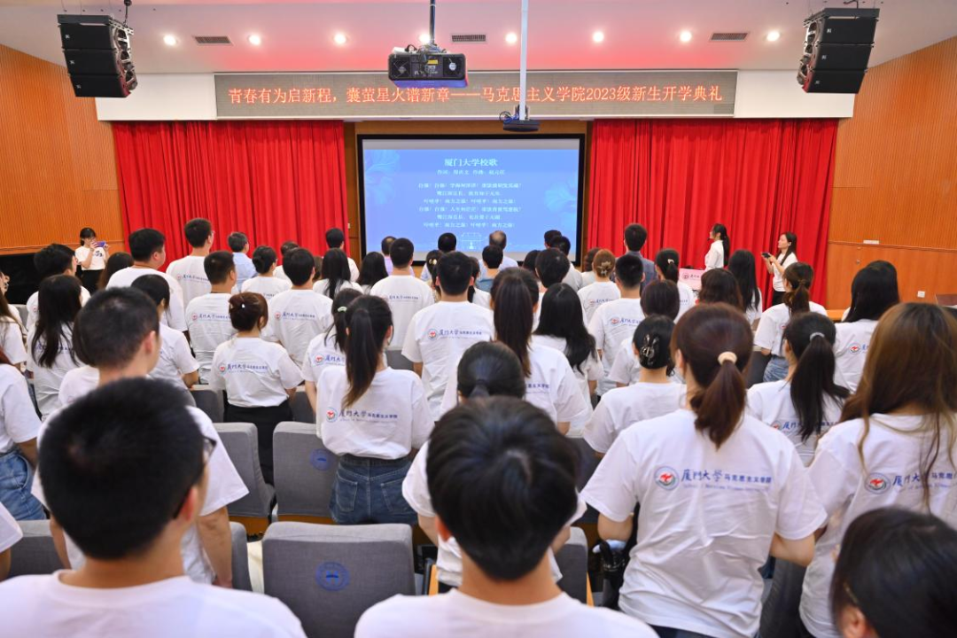 鹭江深长,南强芳华;囊萤星火,筑梦前行。9月13日下午3点,厦门大学马克思主义学院2023级新生开学典礼在化学报告厅隆重举行。校党委副书记、马克思主义学院院长徐进功,校关工委副主任白锡能、苏劲,常务副院长张有奎,校党委党校副校长张艳涛,学院党委副书记杨建中,副院长原宗丽,学院党委委员佳宏伟、蒋昭阳,各教研部负责人,2023级新生班主任、辅导员、教学秘书、师生代表以及全体2023级新生参加开学典礼。典礼由2023级硕士生班主任杨青梅主持。