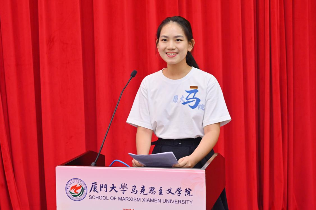 在校生代表2022级博士生方溢超同学发言。他分享了自己来厦园一年的感受和思考,并鼓励新生们在未来的研学过程中,不仅要熟悉厦园的红色记忆,也要重视校外实践,不断追求卓越、迎接挑战。
