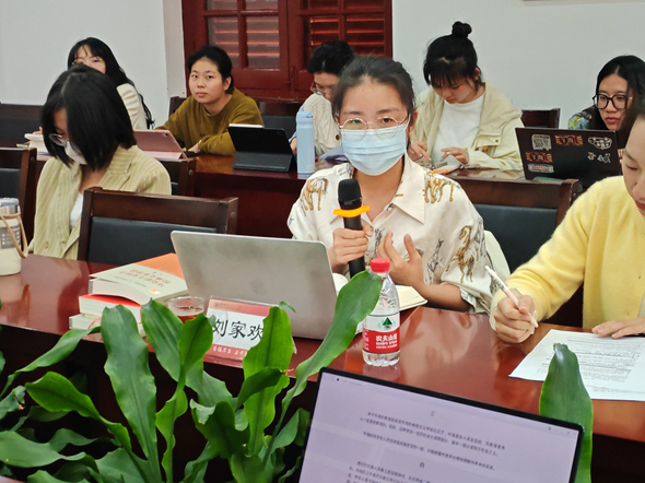 吴嘉鑫同学针对第二小组的读书汇报提出见解,她首先对第二小组的汇报内容进行简要总结,进而提出《提纲》所阐明的关于新唯物主义的基本观点对树立正确三观的意义和马克思“人的本质”观点对个人、国家、世界发展的重要价值。