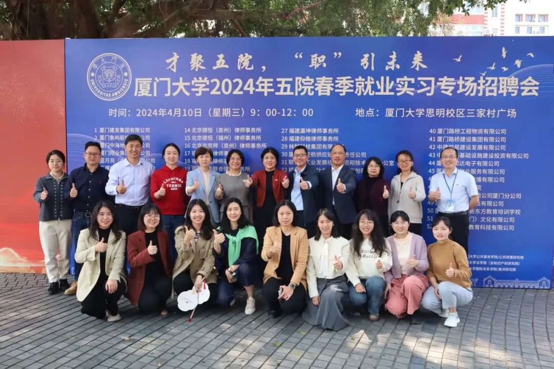 为深入学习贯彻党的二十大精神,全面落实党中央、国务院对高校毕业生就业创业工作的决策部署和教育部《关于做好2024届全国普通高校毕业生就业创业工作的通知》,4月10日上午,“才聚五院,‘职’引未来”——厦门大学2024年五院学生就业实习专场招聘会于三家村广场举行。
