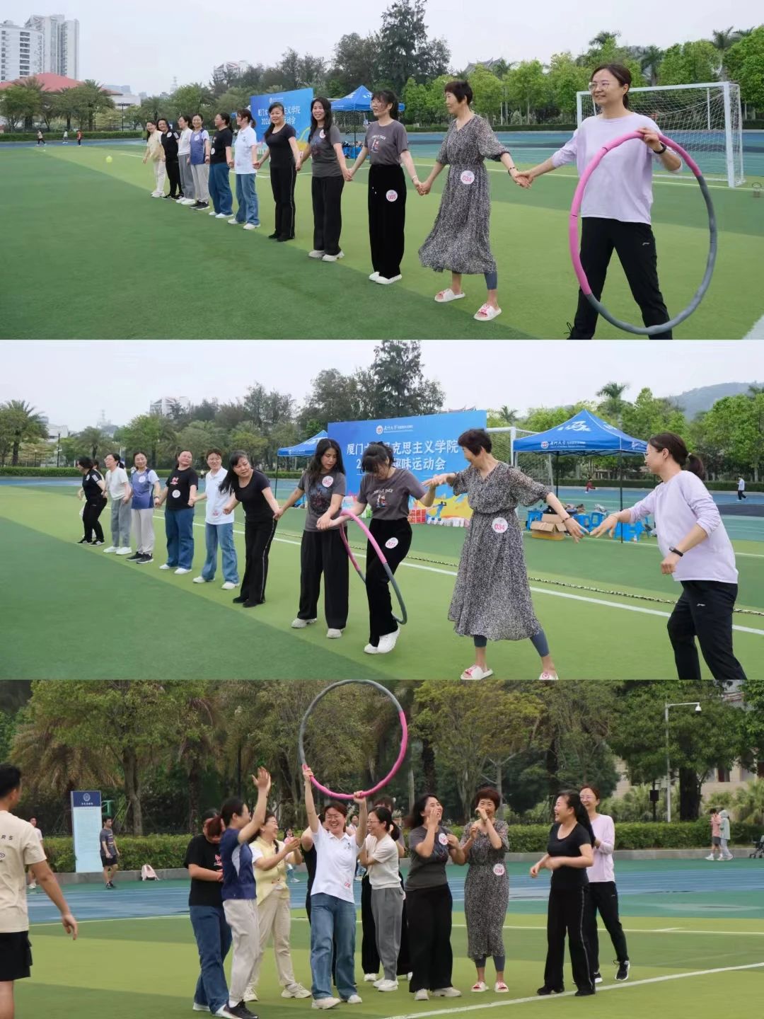 团队一心,身随圈动。从一开始的手忙脚乱,到掌握技巧后的精彩表现,现场掀起阵阵欢乐的波涛!