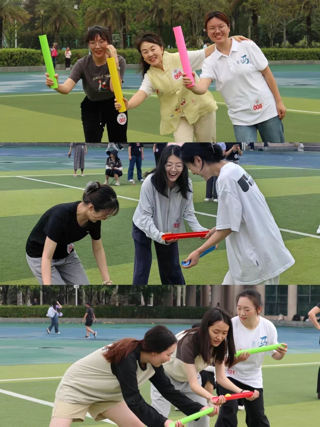 运动员们配合默契,迈出整齐的步伐,斗志昂扬地向前冲刺。喝彩和欢笑成为对青春韶华的最佳诠释!