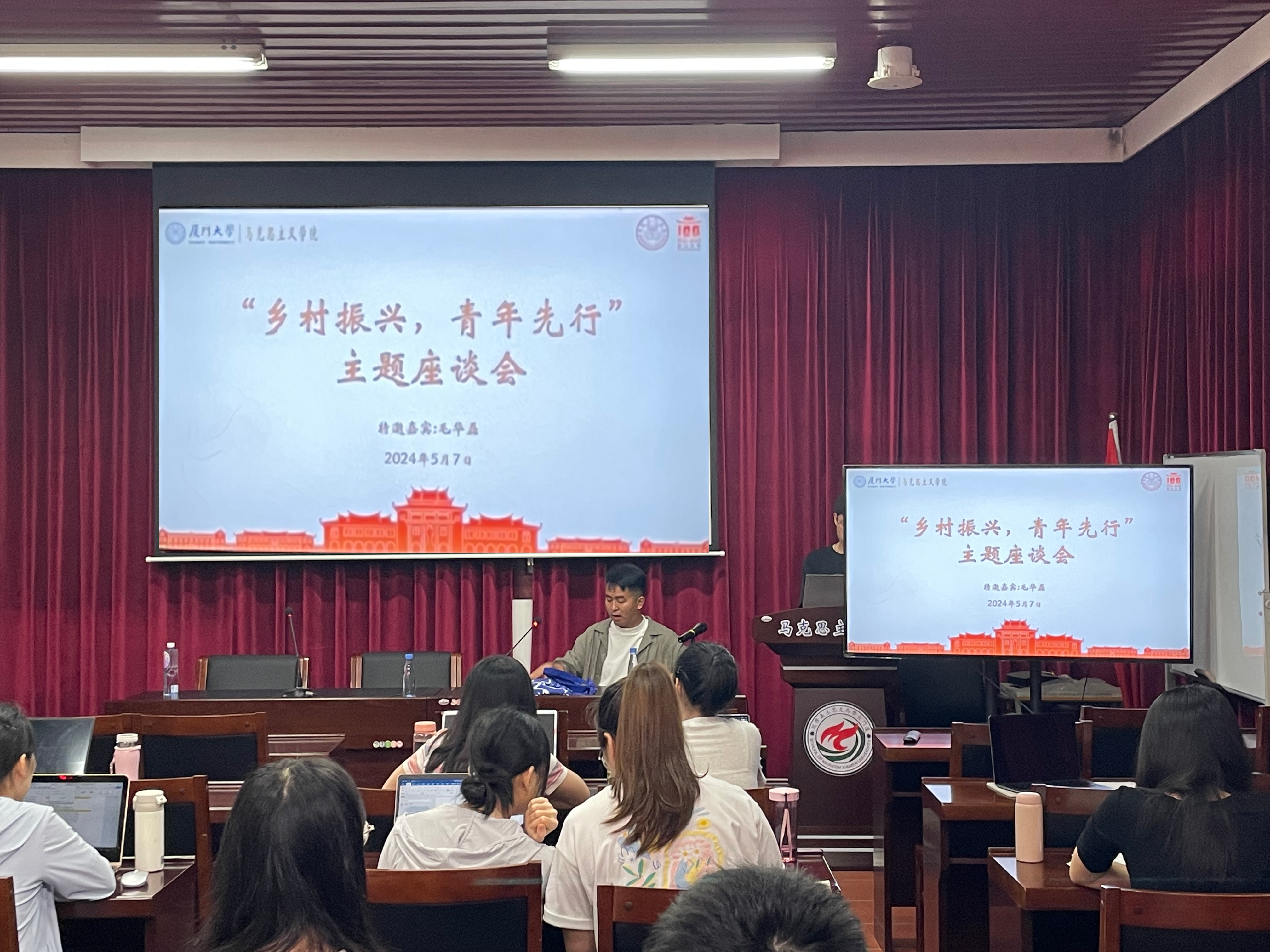 5月7日上午,我院团委邀请第二届全国乡村振兴青年先锋、屏南县乡村振兴特聘指导员、乡野艺校校长毛华磊老师与2022级团支部团员围绕“乡村振兴,青年先行”主题进行座谈,座谈会在同安楼201举行。