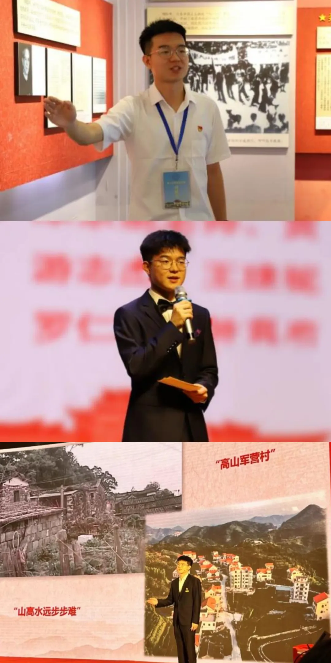 “一段时间不上台,也还是会怯场。”进入研究生阶段,这样的故事也在重演。为了多加锻炼自己的沟通表达能力,罗仁杰主动报名参加了革命史馆的讲解员队伍,成为了马院当届讲解员中唯一的男生。同时,他也参与主持了马院2022年的新年师生联欢会等活动,进一步提升了作为主持人的临场应变能力。在种种经验积累之下,他才有底气报名并全程参与了2022年“追寻习近平总书记的足迹——闽山闽水物华新”全省大学生暑期社会实践活动。而此次貌似不经意的社会实践活动,最终让他得到了在研究生阶段最重要的锻炼机会之一——作为厦门大学研习社代表为全省170万高校师生讲授思政微课。谈到这次不平凡的上台,他回忆道,即使他也算“身经百战”,但在如此重要的活动上汇报也仍会使他惴惴不安。经过反复打磨内容和老师们轮番把关,他才圆满完成了这一任务。经历了这次堪称“脱胎换骨”的磨炼,他明白了想要得到尽可能完善的舞台效果,“千百度”的经验积累和“纳米级”的细节打磨缺一不可。他后来也不禁设想,若是当初没有心血来潮的一步迈出,这样的机会又要等到何时才会出现在他眼前。