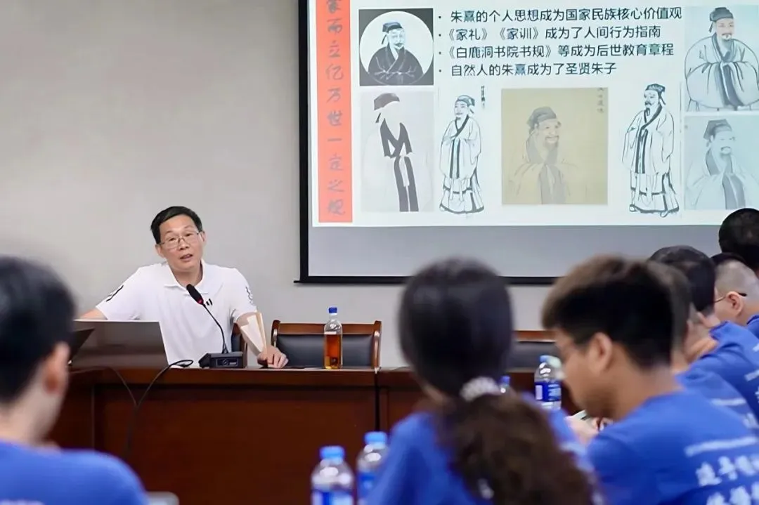 “思政课教师应遵循‘共历、共学、共情、共鸣、共识、共行’的立德树人逻辑,让思政课深入人心。同学们要爱学问、认真做学问,做真学问,爱仁德、诚实、直率和勇敢。”中共建阳区委党校常务副校长邱行洲为实践队师生作了《朱子为人为学为官的历史影响和现代意义》的专题讲座。他详细阐述了朱熹在为人处世、为学求道和为官行政方面的贡献。他表示,朱子文化不仅是中国传统文化的重要组成部分,也是推进党的自我革命、加强党性教育的重要资源,这些思想和行为准则不仅为后世树立了典范,也为现代社会的道德建设和国家治理提供了宝贵的启示。