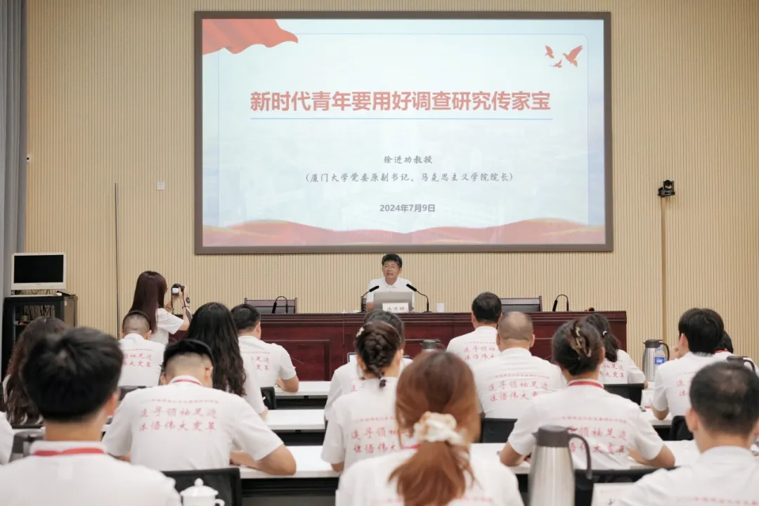 “调查研究是我们党的光荣传统和宝贵经验,也是做好各项工作的基本方法和一贯要求。作为新时代的新青年,要深入调查研究,发扬延安精神和红旗渠精神。”为引导实践队员认真学习领会党的科学理论,更好地将先进文化内化于心、外化于行,厦门大学原校党委副书记、马克思主义学院院长徐进功为实践队员作题为《新时代青年要用好调查研究传家宝》的专题讲座。他从历史维度梳理了历代共产党人对调查研究方法的重视与运用,深刻地揭示了调查研究方法的科学内涵和重大意义;语重心长地教导我们,要坚持问题导向和目标导向相结合,用正确的态度和科学的方法开展调查研究;要深学笃行习近平总书记关于调查研究的重要论述,将此次实践走深、走实。此次专题党课不仅为实践队师生提供了及时有效的指导,还注入了新思路、新方法、新能量,激励着大家将此次暑期社会实践见行见效。