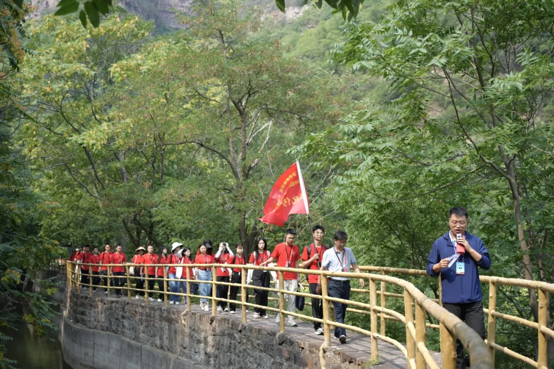实践队师生沿着红旗渠徒步前行