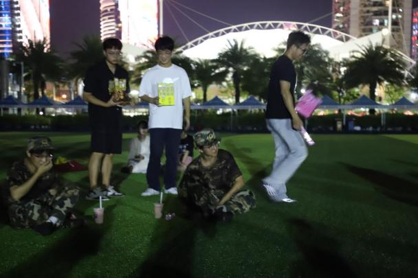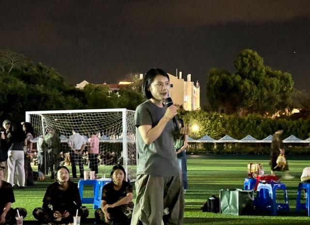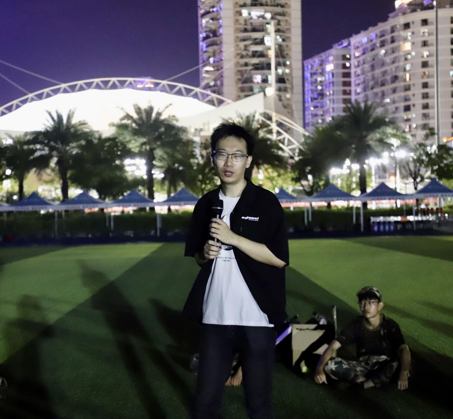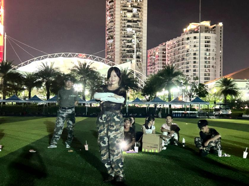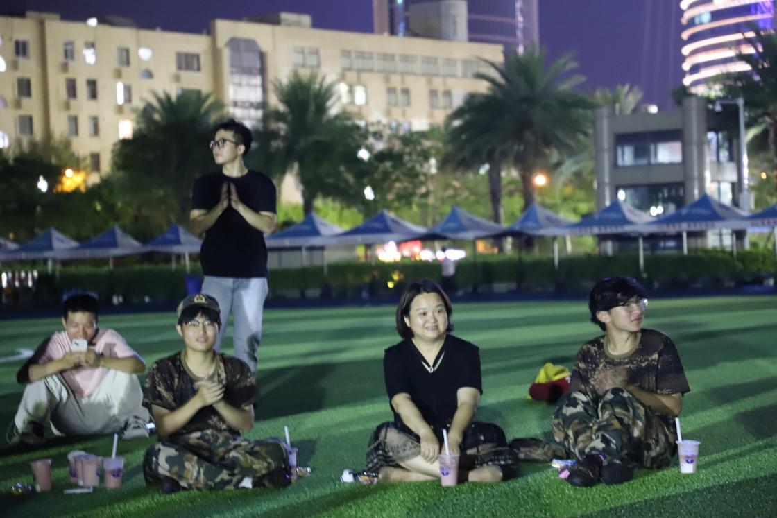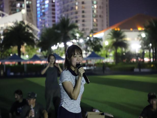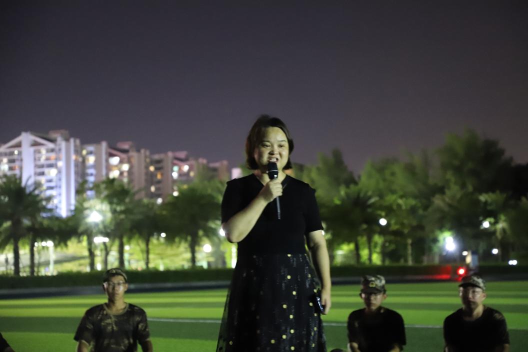 夏静和蓝心雨两位研究生学姐带来双人合唱《我要你》,优美的旋律中浸润着浪漫的气息,悠扬的歌声在演武场回荡,和晚风一起抚平大家的疲惫和燥热。