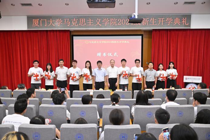 时序金秋,硕果满枝。9月19日下午,厦门大学马克思主义学院2024级新生开学典礼在化学报告厅隆重举行。厦门大学原党委副书记、马克思主义学院院长徐进功,厦门大学原党委常委、马克思主义学院原院长白锡能,学院党委副书记刘晓峰,副院长林密,党委委员、马克思主义中国化教研部主任蒋昭阳,党委委员佳宏伟,近现代史教研部主任周雪香,军事理论教研室主任谢素蓉,班主任、辅导员等教师代表,以及学院全体2024级新生出席本次典礼。典礼由2024级本科生班主任刘皓琰主持。