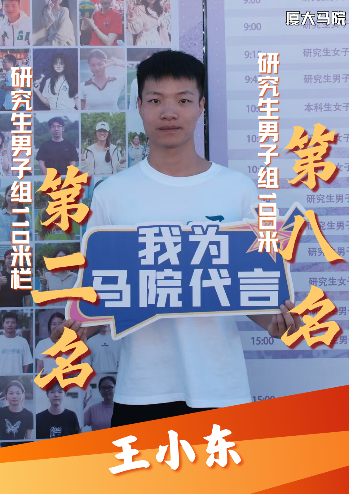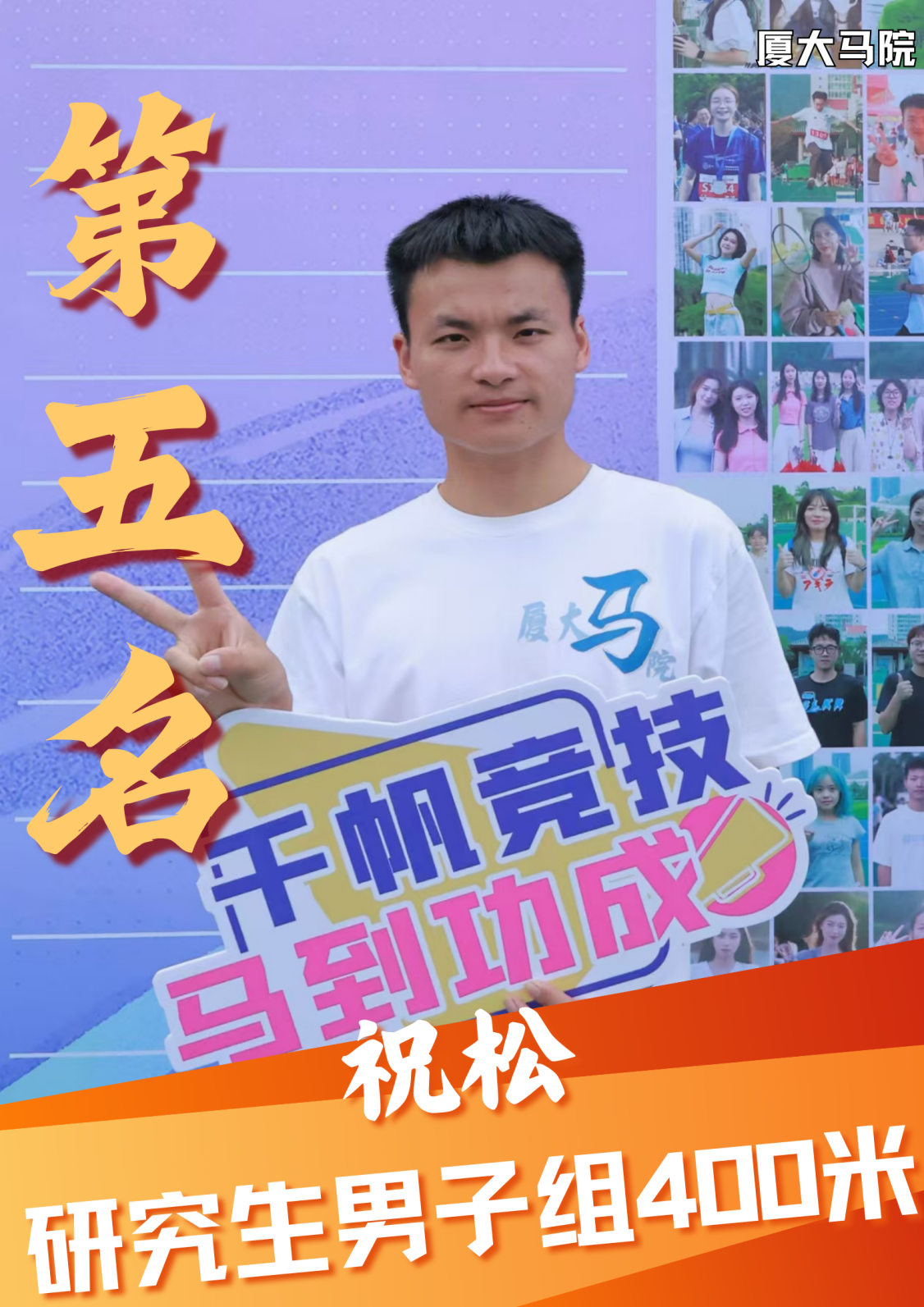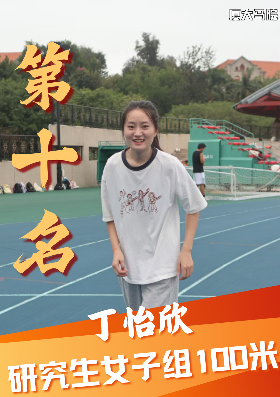 第一次以运动员的身份参加校运会,很激动能够参与这个团体项目。赛场上我们每一位同学都尽力做到了最好,非常开心取得了第七名的好成绩。同时也很感谢一直陪伴我们的志愿者,在赛场旁为我们加油的同学们,有了马院的大家庭才有了我们这一场精彩的比赛!!爱体育、爱马院、爱厦大!