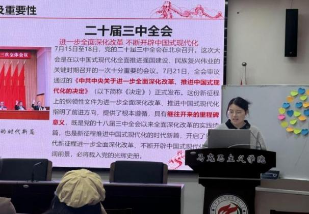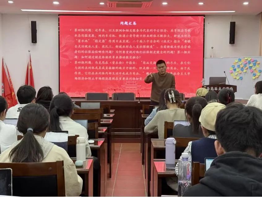 在各抒己见环节,各小组代表同学依次发言,对《决定》中的关键内容进行了全面且细致的解读与剖析。他们不仅准确把握了文本的字面意义,更深入挖掘了其背后的政策逻辑与实践意义,帮助同学们进一步深化了对《决定》的理解与思考。