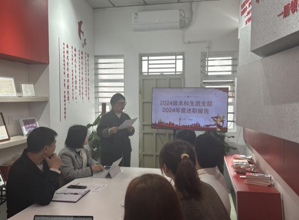 会上,项凌和4名团支部书记分别对2024年度的团支部工作情况进行汇报。他们立足日常工作,聚焦强化思想政治引领落实情况、加强团支部建设情况、联系服务青年及维护青年权益情况、共青团推优工作开展情况等内容,充分展示支部工作的特色和亮点,总结2024年度工作存在的不足,并对2025年的工作提出了改进措施与工作计划。