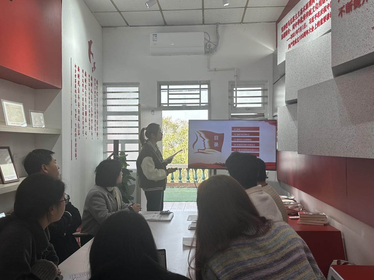 最后,团总支书记项凌带领大家一起学习《中国共产主义青年团纪律处分条例(试行)》的主要内容,解读条例中关于对违反纪律、违法犯罪团员的团纪处分等内容,引导团支部书记在工作与生活中以条例为准则,严守团纪,以身作则。