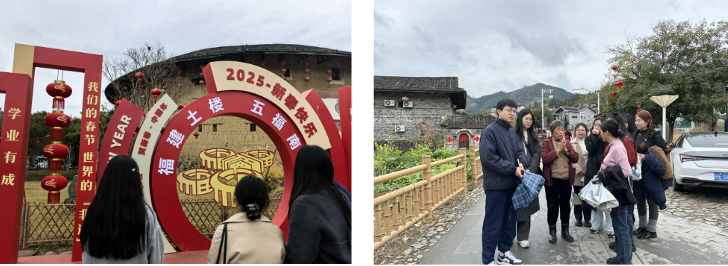 实践队员们还走进福建南靖土楼,了解客家文化的标志性建筑,探索客家春节的文化地标。春节期间,土楼内外张灯结彩,一幅幅饱含祝福的春联、一盏盏高悬的红灯笼,处处展现客家文化的独特魅力。调研期间,实践队通过走访交流、沉浸式参与民俗活动,深入解读客家春节的文化密码。