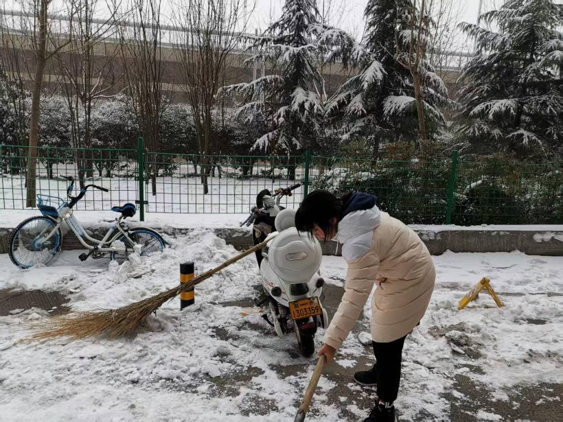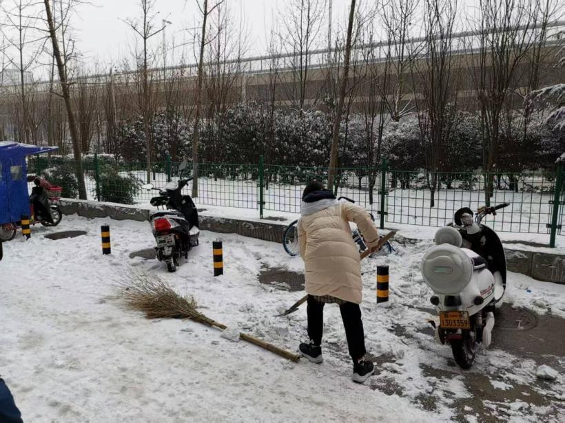 怀揣着志愿服务的热情,刘子墨同学寒假回到家乡河南,在街道办事处开展社会实践活动。她帮忙清理道路积雪,为居民开辟安全通道,挨家挨户张贴烟花爆竹告示,做好安全防范提醒。寒风中挥动铁锹的身影,耐心细致的讲解,此刻,青春担当与社区温情在实践中得到了交融与升华。