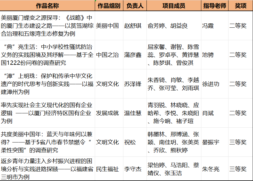 近日,厦门大学第十九届"挑战杯"学生课外学术科技作品竞赛落下帷幕,我院六支参赛团队荣获校级奖项。获奖情况如下: