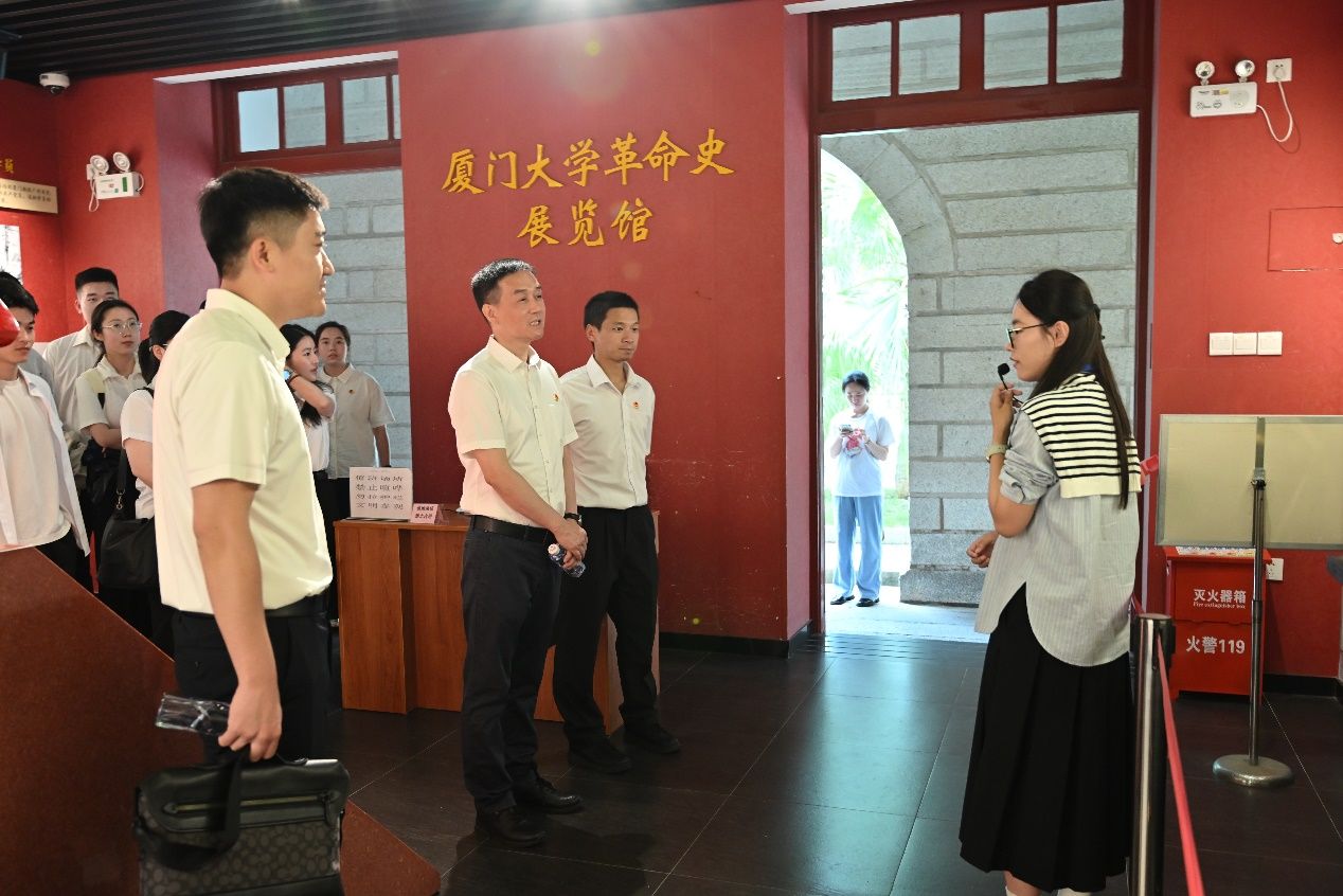 厦门空管站一行首先前往厦门大学革命史展览馆参观学习,在讲解员引导下重温历史,感悟“囊萤之光”。从 1921 年厦大建校初期进步师生播撒革命火种,到抗战时期师生内迁长汀仍坚持救国实践,再到解放战争时期地下党组织领导的爱国民主运动,一段段波澜壮阔的历程通过珍贵文献、历史照片和实物展品娓娓道来,展现出厦门大学身为“南方之强”的文化底蕴,彰显着厦大师生心怀家国、敢为人先的精神品格。一行还参观了“陈嘉庚与厦门大学”纪念展馆,大家纷纷表示,透过这些承载历史记忆的史料,深刻体会到革命先辈以青春赴使命的赤子之心以及嘉庚先生教育救国的决心,将把这份感动转化为工作动力,让红色基因在民航事业中持续传承,续写新时代奋斗篇章。